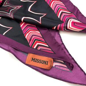 Missoni Pure Silk Black Pink Mixed Print Triangle Scarf Made in Italy