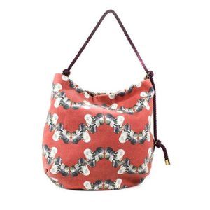 Missoni Red Canvas Shoulder Bag With Blue Grey And White Abstract Shell