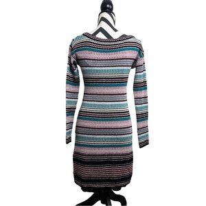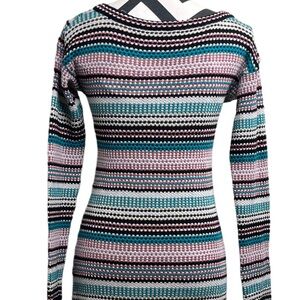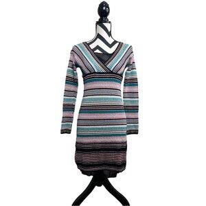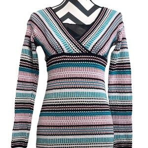 Missoni Striped Wool Blend Sz 8 Knit Metallic V-Neck Babydoll Y2K Dress.