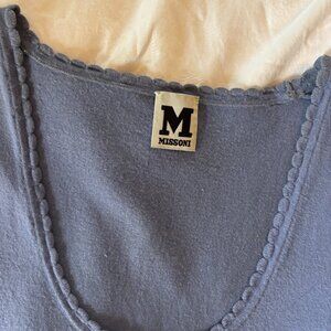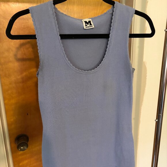 Purple Missoni tank top with scalloped edges. Fitted throughout. Perfectly worn in knit.