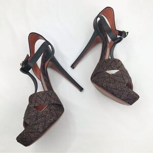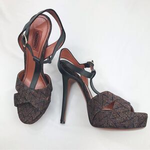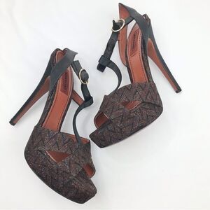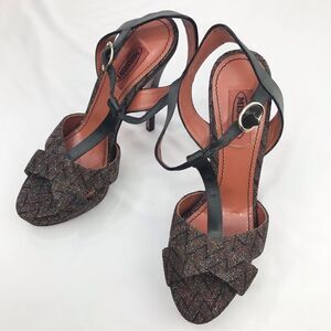 Missoni Dark Brown Colorful Metallic ZigZag Weave Stiletto T Strap Platform Heels