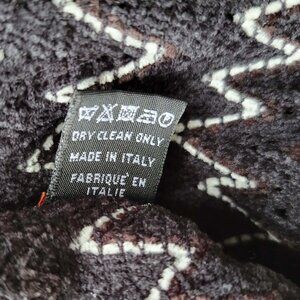 Made in Italy. 85% acrylic, 15% nylon. Features a chevron pattern in black, gray and white. Pre-owned, excellent condition.