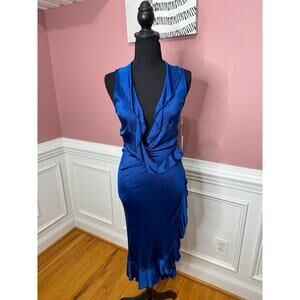 Missoni Viscose Wrap Dress in Royal Blue US Size 8 Cowl Neck Ruffle Asymmetric