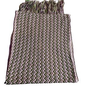Missoni Women’s Chevron Knit Fringe Scarf Green Purple Zig Zags