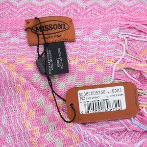 This Missoni wrap is made of 100% soft cotton and features the iconic Missoni pattern. Made in Italy. Brand new in original Missoni sleeve. Approximately 76" x 17" inches, including fringe. Free Missoni gift envelope with purchase.