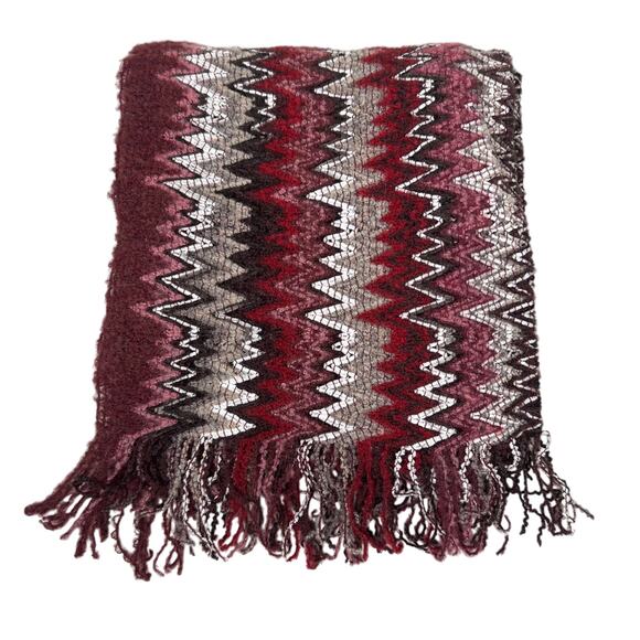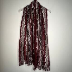 Missoni Zig Zag Purple Burgundy Wool Knit Blend Fringe Scarf
