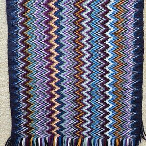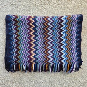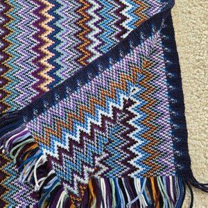 Missoni Zig Zag scarf in perfect condition. No tags, but it's a wool/acrylic blend (50/50). No damage, no holes, no pet hair, no odor.