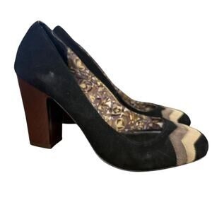 Missoni for Target Black Suede Round Toe Block High Heels Pumps Shoes sz 8.5