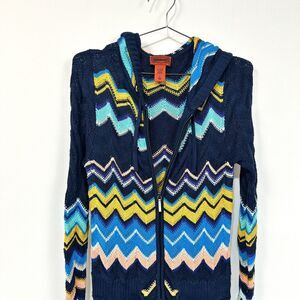 Missoni for Target Sweater Womens Small Zig Zag Knit Long Line Zip Cardigan Hood
