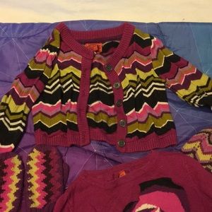 Absolutely ADORABLE matching Missoni set. Long sleeve sweater dress, cardigan, sweater, leggings, hat and mittens. All 18-24m. EUC.