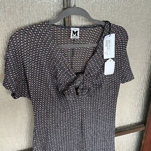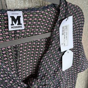 Missoni tie front shimmer dress. Size Small new with tags. Fully lined. Blue green and pink knit patter with a slight shimmer thread. Perfect for the holidays. MIDI length. Designer retail $300.