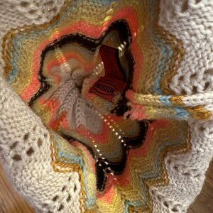 Missoni x Target collaboration woven yarn sweater Pom Pom beanie