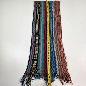 Missoni Multicolor Zigzag Wool Blend Knit Fringe Scarf Italy 7x35