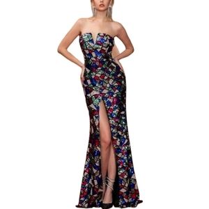 Missord Sexy V-Cut Strapless Sequin Multi Color Mermaid Dress With High Split sz Medium, worn once and is in excellent condition, no holes, rips, stains or tears, all sequins intact.