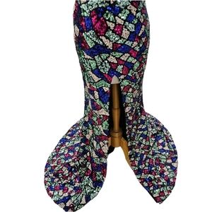 Missord Sexy V-Cut Strapless Sequin Multi Color Mermaid Dress With High Split sz Medium, worn once and is in excellent condition, no holes, rips, stains or tears, all sequins intact.