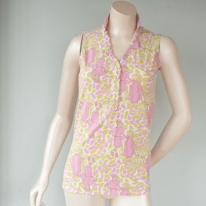 Missy Maude Women's Size XS Pink & Green Golf Girl Print Tank Top. Measures flat approx. 16.5 inches armpit to armpit and 26 inches long. 91% nylon, 9% spandex. Preowned in great condition, see photos.