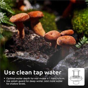 NOTES ON USE: 1. Use the mist maker for up to 10 hours daily; 2. Place the mist maker fogger in a large container like a bowl or fish tank for better fogging effect, no recommend too small containers; 3. Submerge the black water level sensor 2-3 cm beneath the water surface to ensure proper misting function