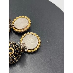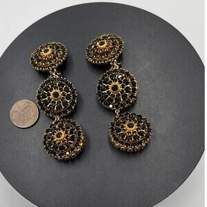 Beautiful black crystal and gold tone clip on earrings. Finished on both sides for a high end runway feel.