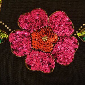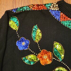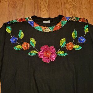 Mister Noah 22W Sequined Sweater Pullover Floral Beaded Flowers 80s Knit