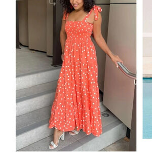 Mister Zimi Orange Printed Polka Dot Maxi Dress Size US 4