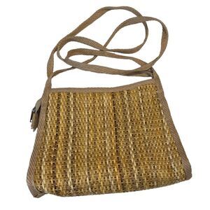 Mister Ernest Handbags Tan Straw Woven Zip Close Made in Italy Shoulder Bag