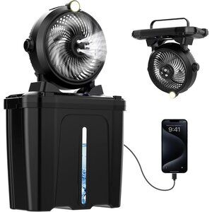 * 🌀【Wide Range of Uses & Durable】: Made of high-strength ABS material, Misting fan portable offers excellent wear and impact resistance, ensuring long-lasting. durability for outdoor use. Besides, LED lighting functions provide bright lighting for fishing, barbecue or emergency. Versatile Outdoor Misting Fan supports floor-standing, table-top and hanging models.