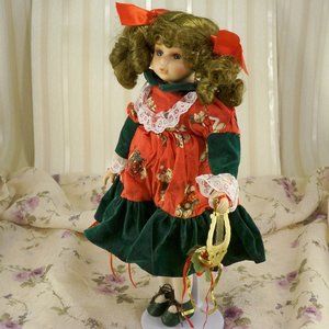 Mistletoe Miss Collectable Tradition Porcelain Doll W/Stand