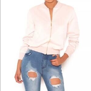 Mistress Rocks Boss Lady Pink Satin Bomber Jacket Size Small