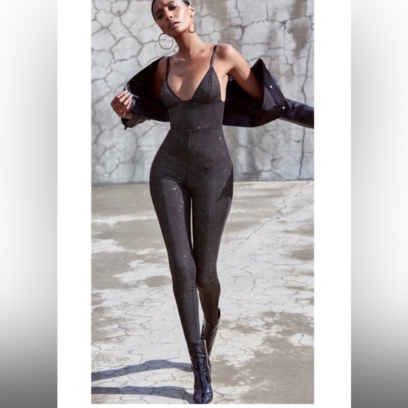 Mistress Rocks Black & gold sparkle jumpsuit size L new with tags