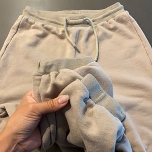 Great condition. Small cuff on the bottom and top with drawstring closure. Neutral nude color pairs well with everything! Tapered jogger for a flattering fit to dress up or down. From mistress rocks / house of chicken brand.