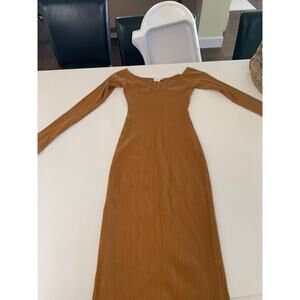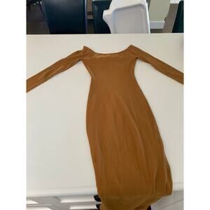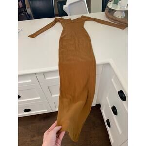 This listing is for a gently used Mistress Rocks off the shoulder maxi dress in rust. This is a size XS.