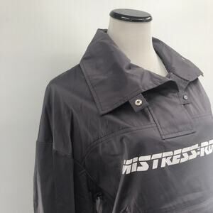 This super fly pull on jacket is cut from a techno polyester. It has a high neck, long sleeves, oversized fit and logo to the front. Neck can be worn all the way up, or folded down. Long sleeves. Front pocket. Side pockets. Polyester. Hand wash. New with tags.