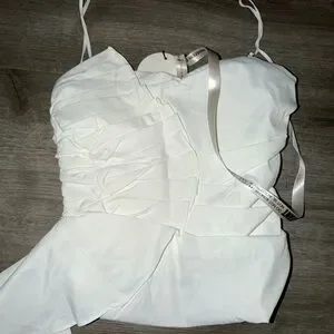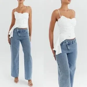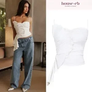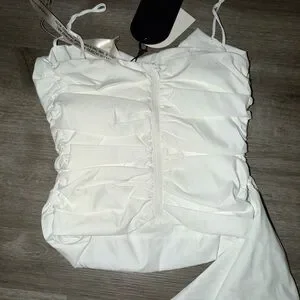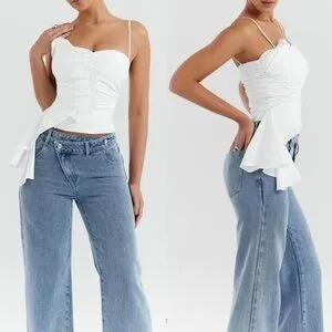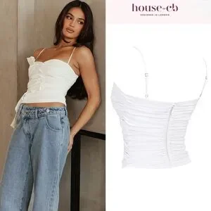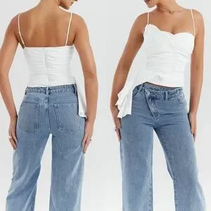 Sweet ruffles lend a little bit of playfulness to this corset-inspired top with ruching along the bodice for extra texture.