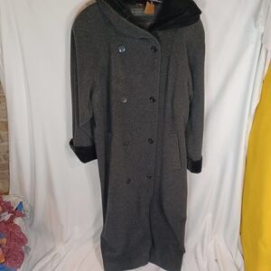 Misty Harbor Velour Velvet Trim Wool Full Length Trench Coat Size 12