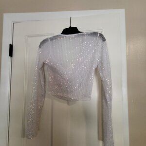 Misty Rose Semi Sheer White Sequin Drape Front Crop Top Size Small Front is lined