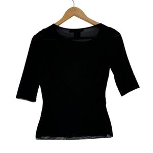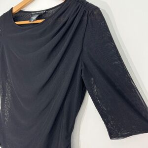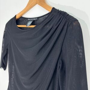 Misura By Joeffer Caoc Women’s Size Small Black Pleated Mesh Sheer Blouse