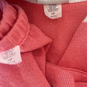 Elegant coral and white two-piece skirt suit. Features gold button accents and a zip-up front size 12 L