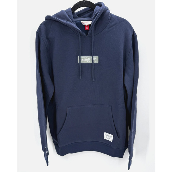 Mitchell & Ness Box Logo Hoodie Sweatshirt Branded Navy Blue Mens Size Large New