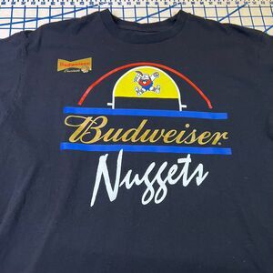Mitchell & Ness Budweiser Denver Nuggets T-Shirt Sz L Black Courtside NBA Retro