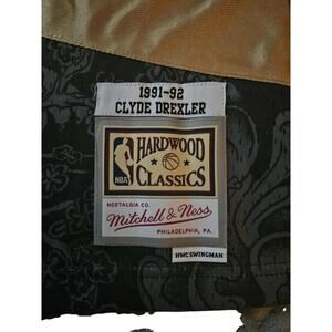 The Mitchell & Ness Clyde Drexler 91/92 Trail Blazers Black Hardwood Swingman Jersey is a high-quality basketball jersey featuring the iconic player Clyde Drexler from the Portland Trail Blazers. This officially licensed NBA jersey in size L is perfect for any basketball fan looking to show their team spirit. Made with durable materials and authentic design, this jersey is a must-have for any fan wanting to represent their favorite player and team on and off the court.