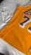 This is a Mitchell & Ness Dennis Rodman Los Angeles Lakers 1998-99 Hardwood Classics Swingman Jersey in gold