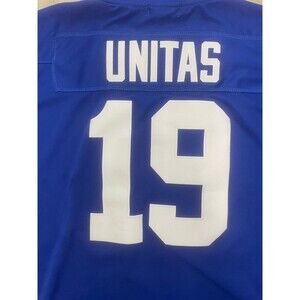 The product is a Mitchell & Ness Johnny Unitas 1970 Baltimore Colts home jersey in size 52. This officially licensed NFL jersey is designed for men who are fans of the Baltimore Colts and Johnny Unitas. The jersey is in the team's traditional blue color and is perfect for wearing during the regular season games. It is a high-quality fan apparel item that pays homage to the legendary quarterback who played for the Baltimore Colts.