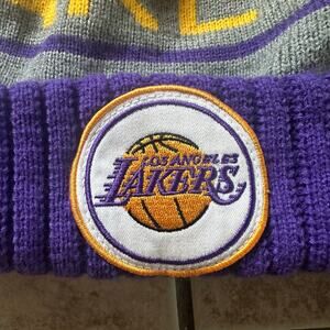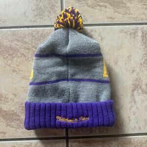 Mitchell & Ness Los Angeles Lakers Beanie Cuffed Beanie NBA Knit Hat Gray Purple
