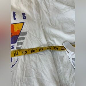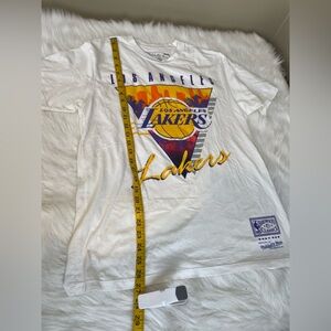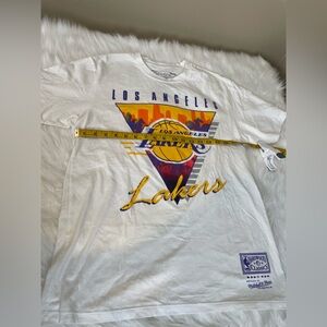 Classic white tee with vibrant Lakers graphic. Features bold team logo and colors.