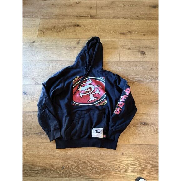 Mitchell & Ness Mens Black Hooded San Francisco 49ers Graphic Sweatshirt Large