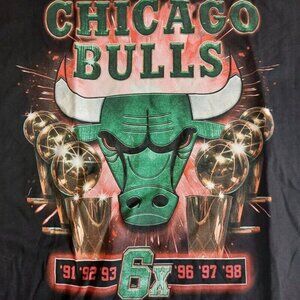 Mitchell & Ness Men's Size L Chicago Bulls 6x Champions T-Shirt Black Green