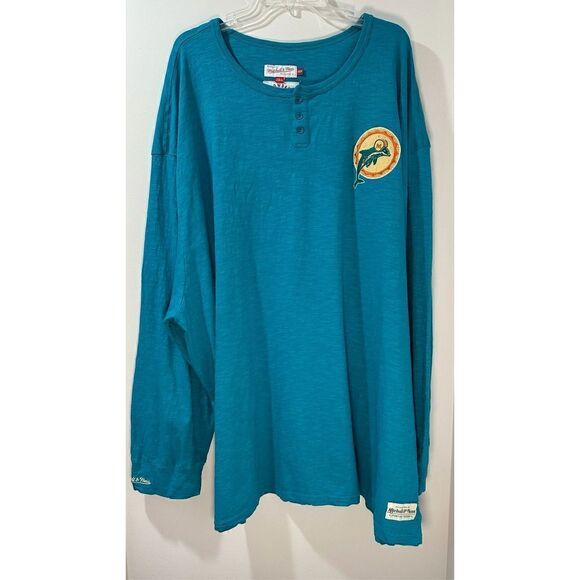 Mitchell & Ness NFL Throwback Miami Dolphins long sleeve shirt sz 6XLB. #13-0314
