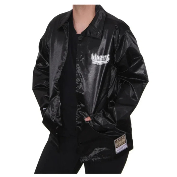 Mitchell & Ness Portland Blazers Doodle Coaches Jacket Snap Satin Black Size L