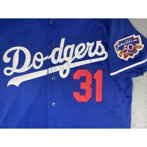 Mitchell & Ness Sewn Jersey Mike Piazza #31 Los Angeles Dodgers Jackie Robinson 50th Mens Medium 44 Blue