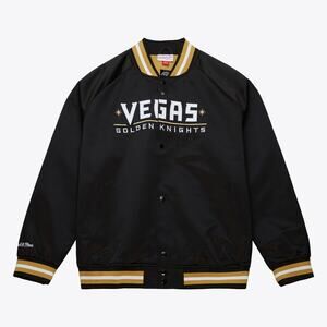 Golden Knights jacket, Vegas NHL gear, satin bomber jacket, Mitchell & Ness hockey jacket, NHL fan apparel, fall sportswear, unisex fan jacket, game day outfit